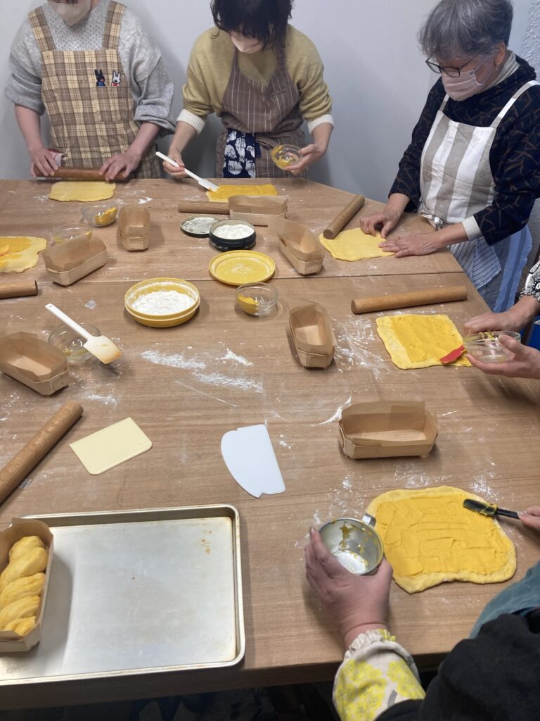 今年もあと1週間、工房での初メニューは「パンプキンブレッド」生地ができているクイッククラスで2025年を締めくくれた。7名で広く使えるスペースにして正解!みんなの一体感も増し、ゆったり作業してもらえるので、見ていて安心。かぼちゃの黄色が映える生地は、パニムールという木の型をあえて使ってのレシピに。火の入り方が優しいのでよりふわもち食感になる。甘さも控えめでかぼちゃのクリームは砂糖なし、クリームチーズとカボチャを合わせただけにした。具材にレーズンなども巻き込んでも良かったなあ。